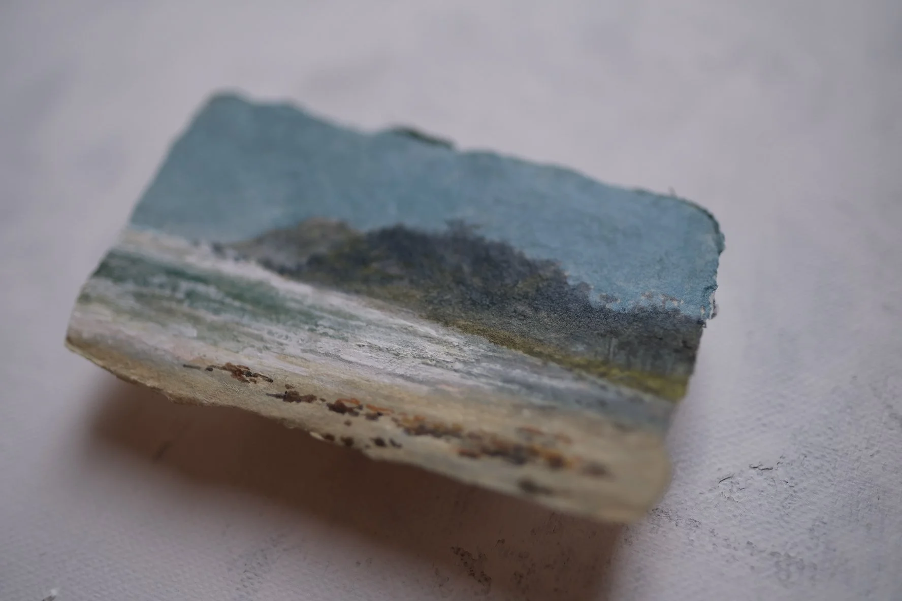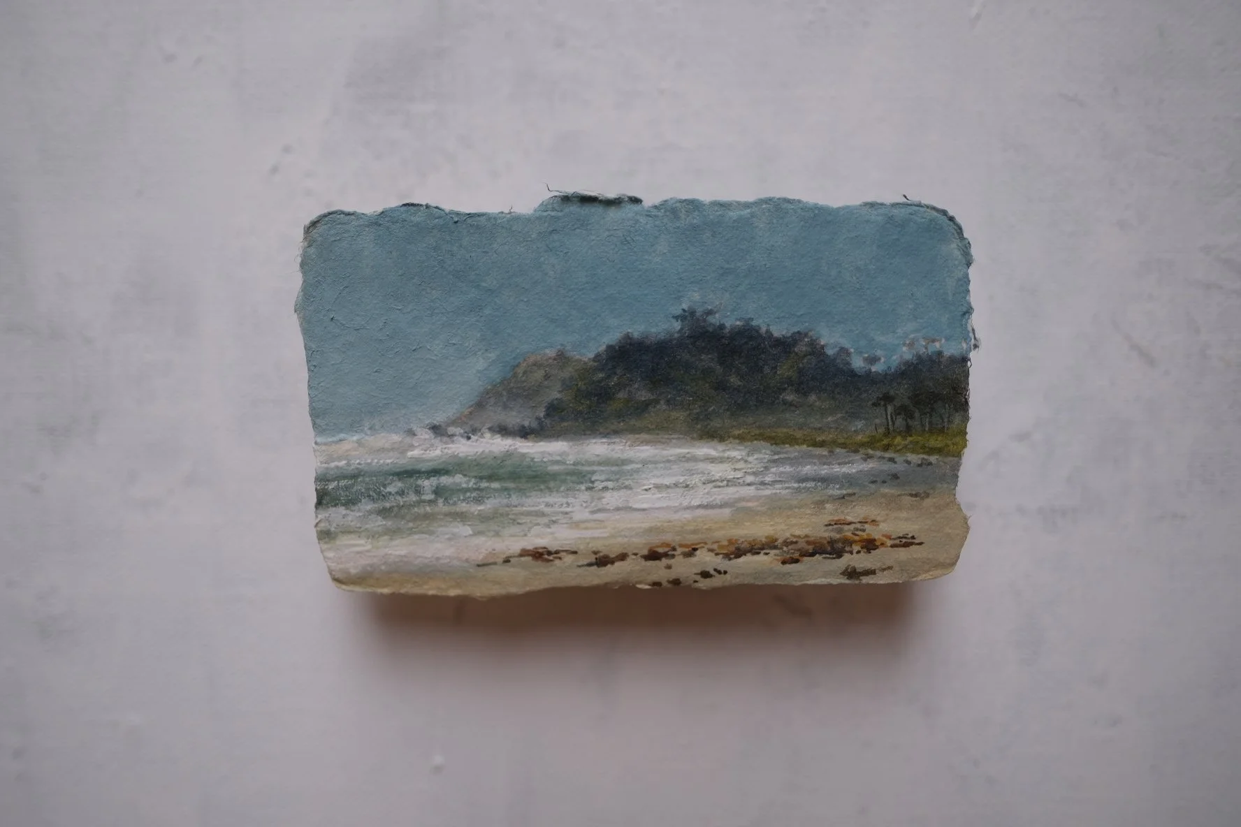 Approximately 2.125 x 3.675 inch gouache on handmade paper, signed on the back.