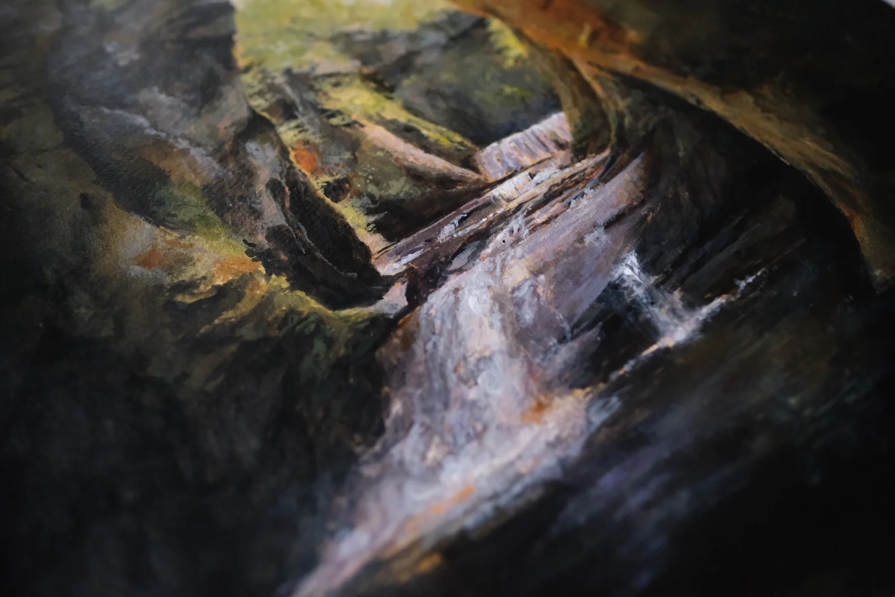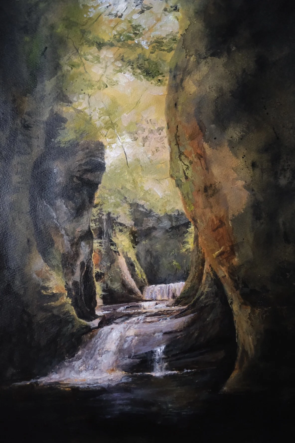 Approximately 16 × 20 inch acrylic painting on heavy paper. This piece has been sealed with an archival varnish and signed on the back.